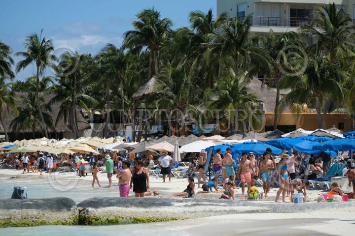 CANCÚN, QUINTAMA ROO, 18ABRIL2025.- Turistas nacionales y locales acudieron a la playa delfines con motivo de las vacaciones de Semana Santa. FOTO: ELIZABETH RUIZ/CUARTOSCURO.COM