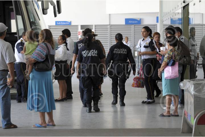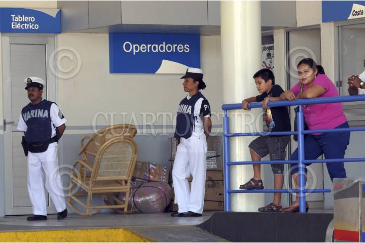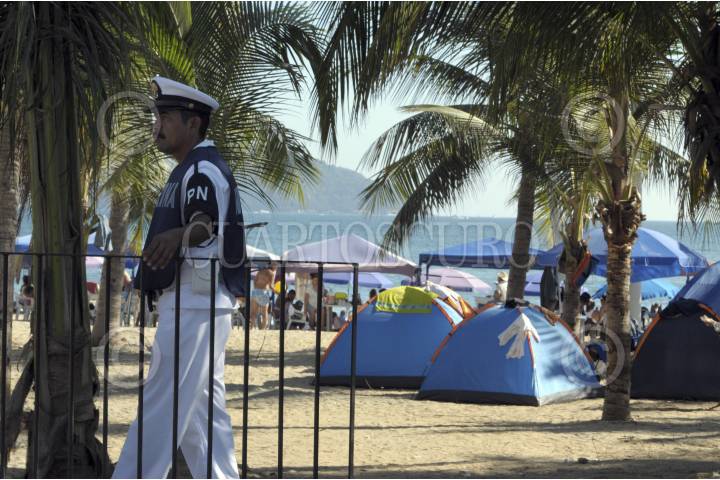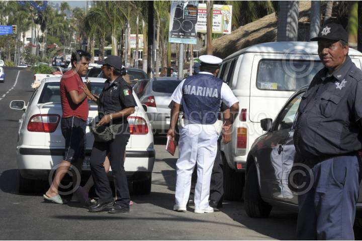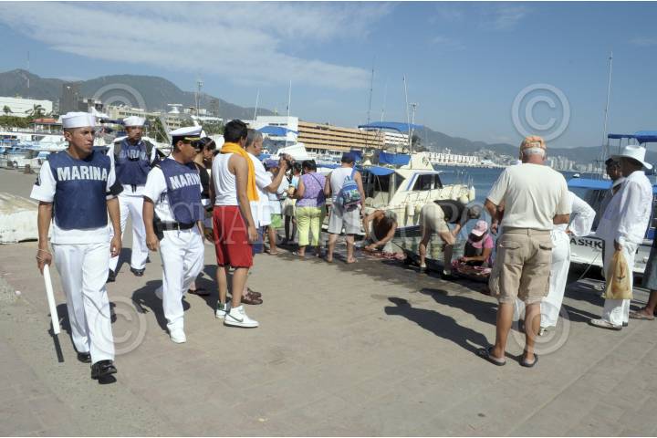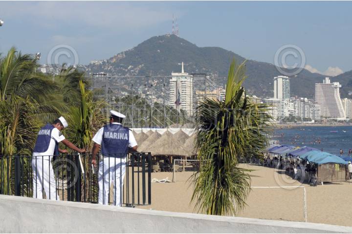 ACAPULCO, GUERRERO, 28DICIEMBRE2012.- Autoridades de los tres niveles de gobierno implementaron un operativo de seguridad para los turistas que visitan en estas vacaciones dándoles seguridad en las terminales y las entradas de las casetas terrestres y toda la bahía del puerto de Santa Lucia y toda la costera donde elementos de la Marina y el cuerpo de policía del estado, quienes están vigilando sin armamento para que los turistas no se sientan con temor de que estén cerca de ellos. FOTO: BERNANDINO HERNÁNDEZ /CUARTOSCURO.COM