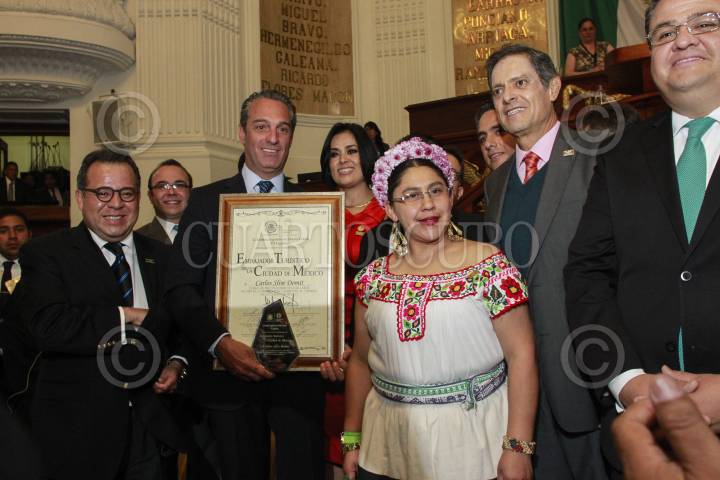 CIUDAD DE MÉXICO, 23MARZO2017.- Carlos Slim Domit, fue nombrado "Embajador Turístico de la Ciudad de México" por la comisión que preside la diputada Luisa Alpízar Castellanos en la Asamblea Legislativa del Distrito Federal. Esto por su destacada labor de difunción y promoción del patrimonio turístico e incrementar su proyección como uno de los mejores destinos del mundo. FOTO: CARLOS MARURI /ALDF /CUARTOSCURO.COM