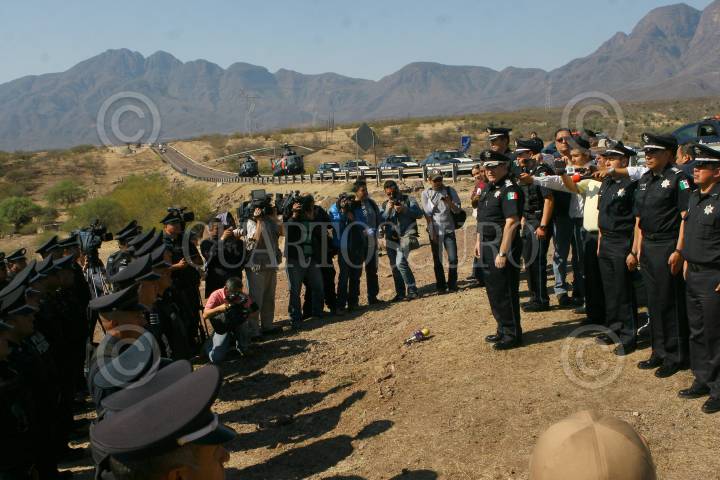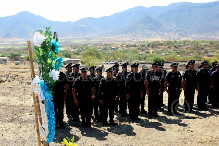 LA HUACANA, MICHOACÁN, 02MARZO2015.- Elementos de la Policía Federal realizaron el d´ia de ayer una ceremonia en el lugar donde fueron apilados el 13 de julio de 2009 los cadáveres de 12 agentes, una mujer incluida, torturados y asesinados por La Familia michoacana, y en cuya memoria se conmemora esa fecha como el Día del Policía Federal. El comisionado de la Policía Federal, Enrique Galindo, aseguró que con la camptura de Servando Gómez Martínez, La Tuta, se cerró "un ciclo". FOTO: ARCHIVO/CUARTOSCURO.COM