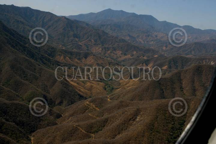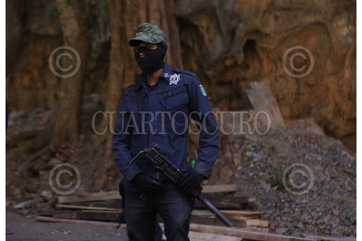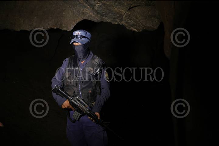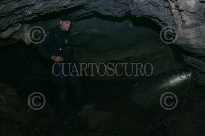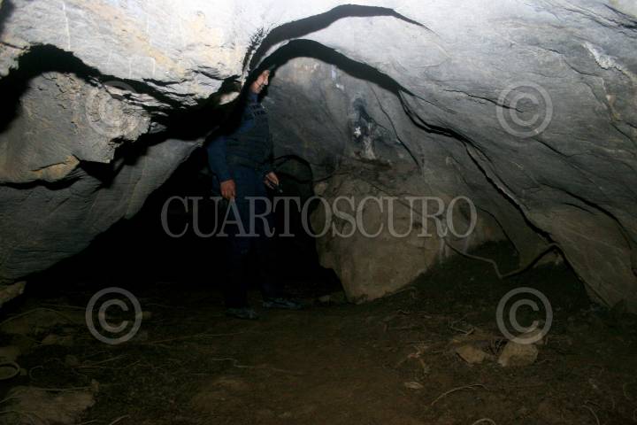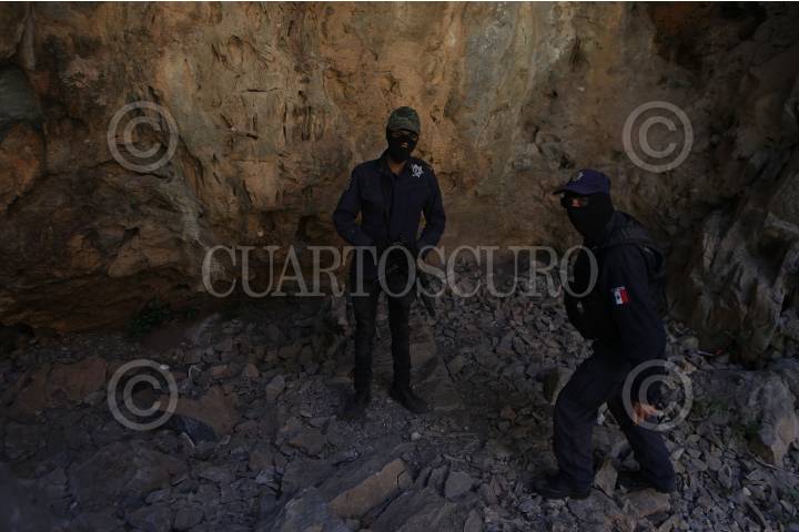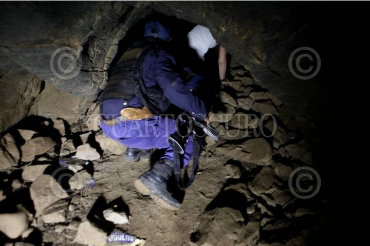 ARTEAGA, MICHOACÁN, 03MARZO2014.- Elementos de la Fuerza Rural realizaron un recorrido por las zonas donde Servando Gomez Martinez "La Tuta", usaba como escondite constantemente. La cueva "La Toscana" ubicada entre los municipios de Arteaga y Tumbiscatío era uno de los preferidos del capo michoacano, en su entrada se encontraba una puerta que fue derrumbada cuando autodefensas descubrieron el lugar en abril del 2013. FOTO: ALAN ORTEGA / CUARTOSCURO.COM