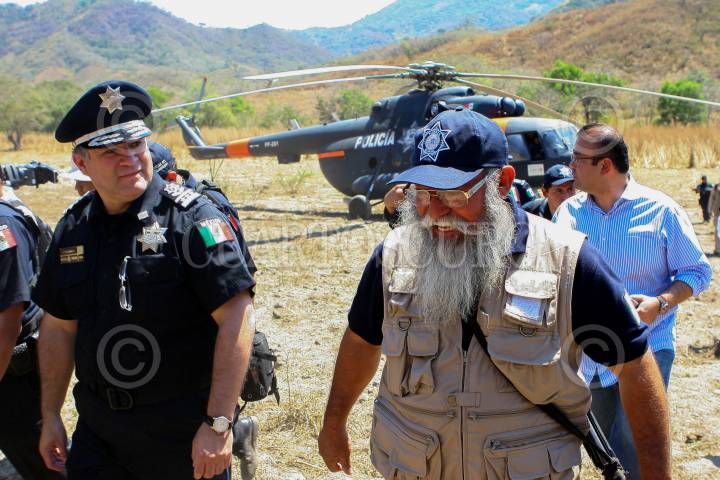 AGUILILLA, MICHOACÁN, 02MARZO2015.- La Policía Federal realizó un recorrido el día de ayer por los últimos escondites de Servando Gómez Martínez, La Tuta, líder del grupo delictivo "Los Caballeros Templarios", y quien fue detenido el pasado viernes. Entre los lugares que se escondió antes de ser atrapado en Morelia, se encuentra una cueva y una choza de madera. En la imagen, el comisionado de la Policía Federal, Enrique Galindo, y Estanislao Beltrán, 'Papá Pitufo', de la policía rural. FOTO: ARCHIVO/CUARTOSCURO.COM