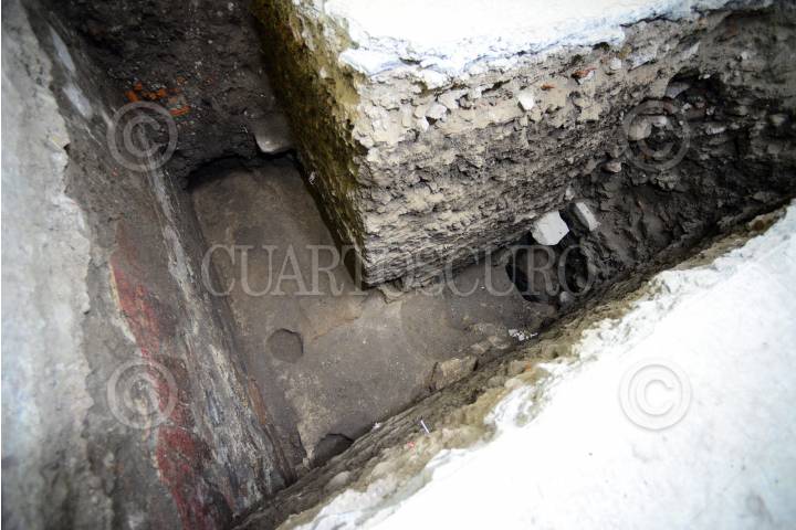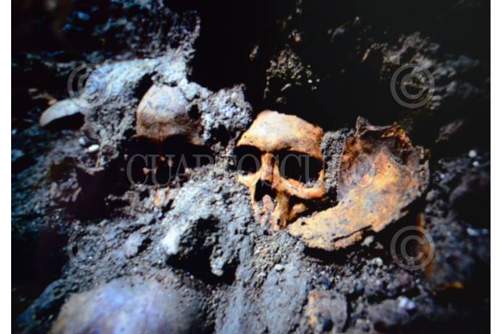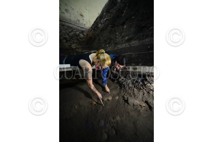 MÉXICO, D.F., 20AGOSTO2015.- Arqueólogos y especialistas en la materia pertenecientes al INAH, comunicaron ante medios de comunicación, el hallazgo del Tzompantli de Tenochtitlán, situado debajo del Templo Mayor en el predio de República de Guatemala. a pesar de se desconoce todavía el número total de cráneos que componen esta pared conformada entre otros elementos, por cal y arena, sería uno de los vestigios más relevantes para la arqueología en México. FOTO: MARÍA JOSÉ MARTÍNEZ /CUARTOSCURO.COM