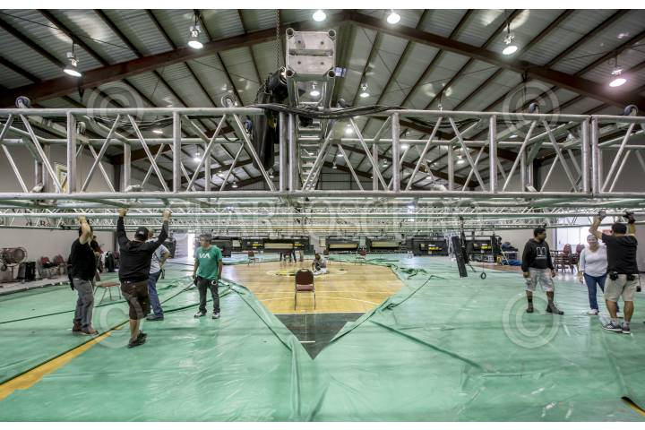 TIJUANA BAJA CALIFORNIA, 16MAYO2018.- El Instituto Nacional Electoral (INE) inició con la instalación de la estructura del set televisivo en el gimnasio de la Universidad Autónoma de Baja California (UABC), lugar donde se realizará el segundo debate de candidatos a la Presidencia de la República. FOTO: OMAR MARTÍNEZ /CUARTOSCURO.COM