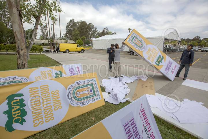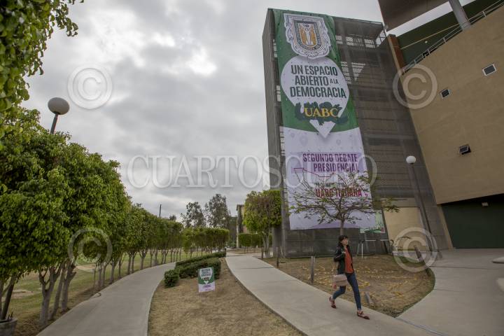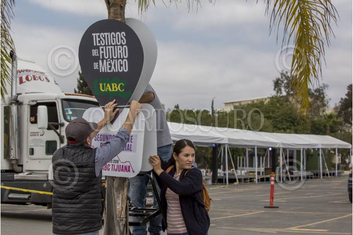 TIJUANA BAJA CALIFORNIA, 18MAYO2018.- El Instituto Nacional Electoral (INE) continua con trabajos previos en el campus de la Universidad Autónoma de Baja California (UABC), lugar donde se realizará el segundo debate de candidatos a la Presidencia de la República. FOTO: OMAR MARTÍNEZ /CUARTOSCURO.COM
