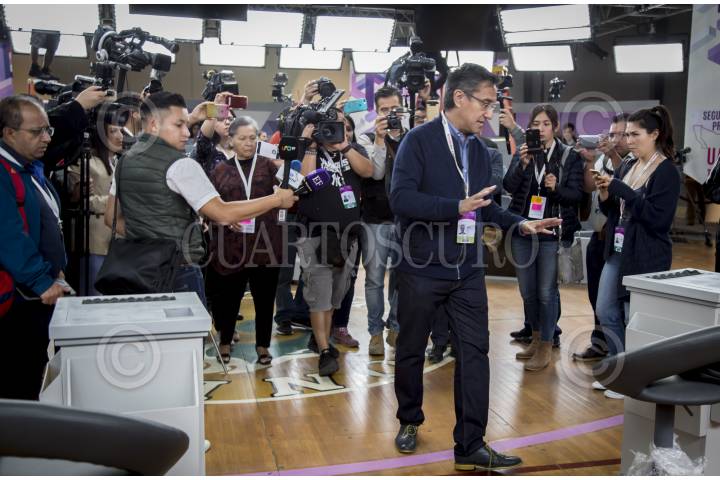 TIJUANA BAJA CALIFORNIA, 19MAYO2018.- El Instituto Nacional Electoral (INE) ofreció un recorrido a los medios de comunicación por el set televisivo en el gimnasio de la Universidad Autónoma de Baja California (UABC), lugar donde se realizará el segundo debate de candidatos a la Presidencia de la República. FOTO: OMAR MARTÍNEZ /CUARTOSCURO.COM