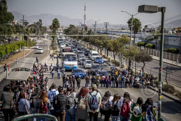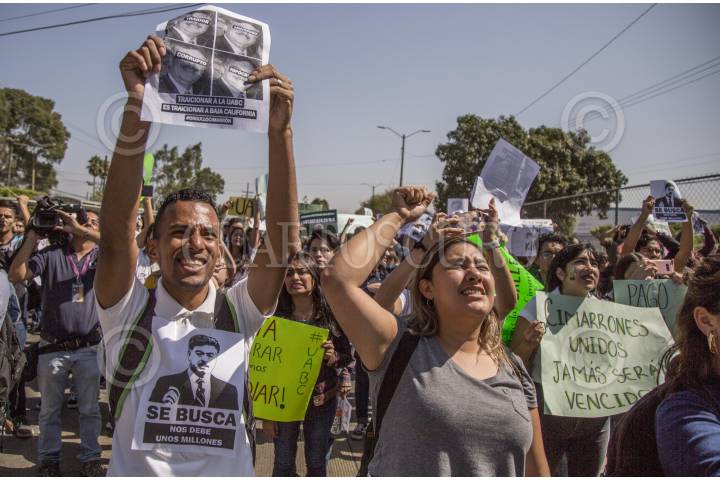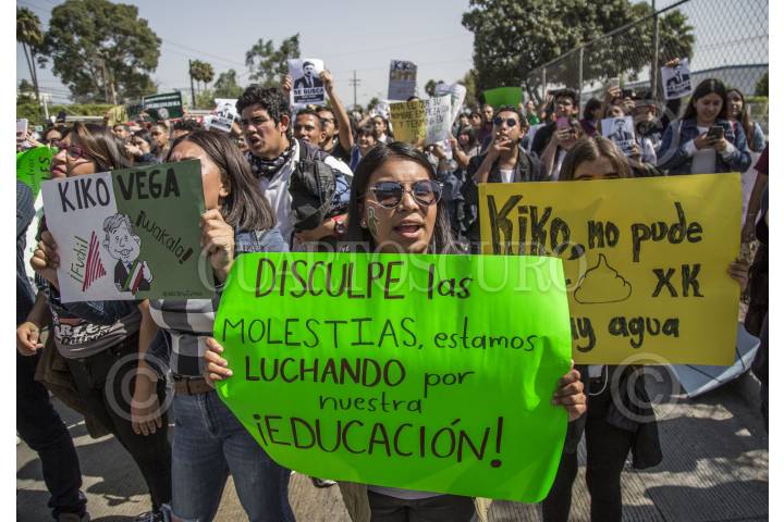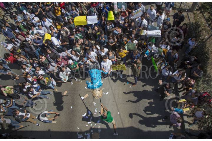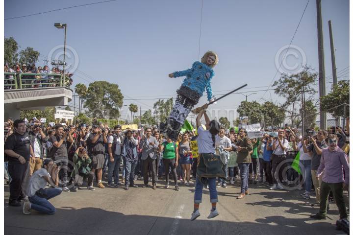 TIJUANA BAJA CALIFORNIA, 10OCTUBRE2019.- Cientos de estudiantes de la Universidad Autónoma de Baja California (UABC) se manifestaron para exigir que el gobernador del Estado, Francisco Vega de la Madrid, liquide el adeudo de mil 600 millones de pesos que tiene con la institución. La protesta se realizó dentro de la universidad y procedió con una marcha a lo largo del bulevar Tecnológico, lugar donde alumnos rompieron una piñata que tenia impreso el rostro del gobernador. FOTO: OMAR MARTÍNEZ /CUARTOSCURO.COM