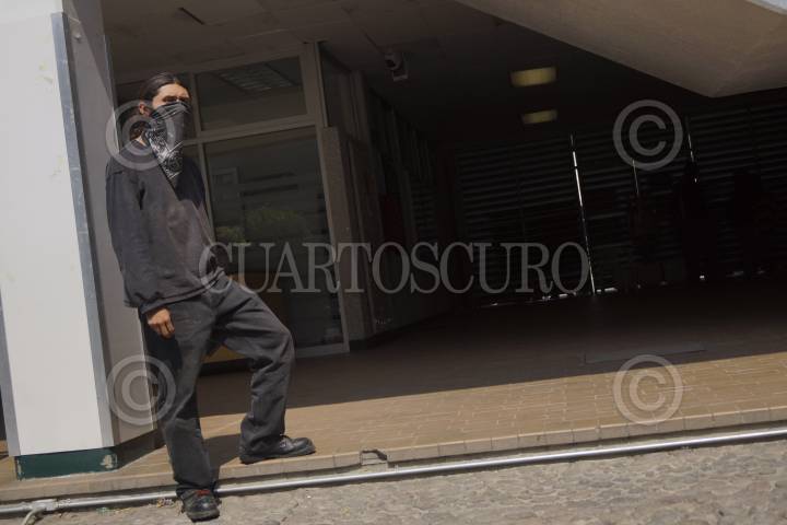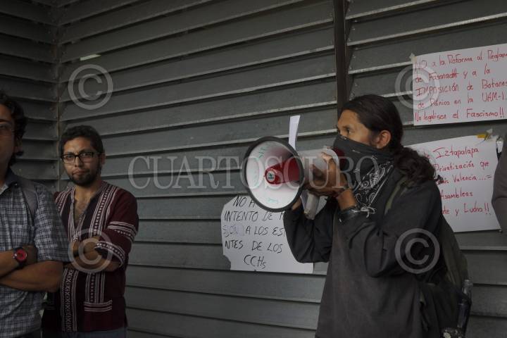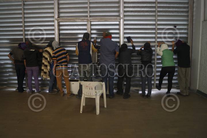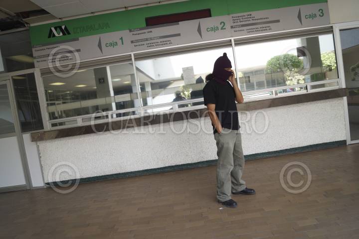 MÉXICO, D.F., 24ABRIL2013.- Estudiantes de la Universidad Autónoma Iztapalapa Metropolitana, integrantes de la asamblea estudiantil, tomaron las instalaciones de la rectoría en apoyo a los estudiantes del CCH que tienen tomada la rectoría en CU, así como, también para hacer llegar a las autoridades de esta casa de estudio un pliego petitorio con demandas del sector estudiantil organizado. FOTO: PEDRO ANZA /CUARTOSCURO.COM