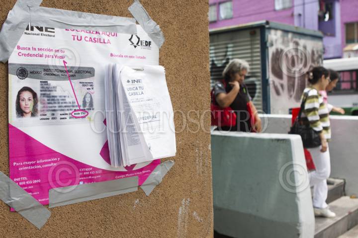 MÉXICO, D.F., 28ABRIL2015.- El INE ha colocado las listas en las calles para que la gente ubique sus casillas, la información esta colocada en la salida del metro Niños Héroes. FOTO: MOISÉS PABLO /CUARTOSCURO.COM