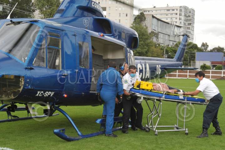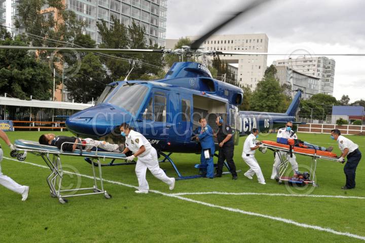 MÉXICO, D.F., 13AGOSTO2010.- Cuatro menores de nombre Cristal Pérez de 6 años, Tania N. de 10 años, Omar Pérez García de 12 años y Agustín García de 13 años, resultaron gravemente lesionados al caer de aproximadamente 40 metros rodando de una pendiente en la zona de minas ubicada entre las delegaciones de Tlahuac e Iztapalapa, por lo que fueron trasladados en helicópteros de la SSP al deportivo Corona y de ahí al hospital Infantil de Legaría en donde se reportan graves. FOTO: LUIS CARBAYO/CUARTOSCURO.COM