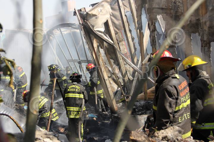 MÉXICO, D.F., 25MARZO2011.- Un vehículo y dos cajas de trailer, se consumieron por las llamas que abrazaron un deshuesadero ubicado en las calles Manuel Salazar y Federico Dávalos en la colonia Ex-Hacienda El Rosario en Azcapotzalco. Al lugar arribaron elementos del cuerpo de Bomberos de esta delegación y Naucalpan. FOTO: LUIS CARBAYO/CUARTOSCURO.COM