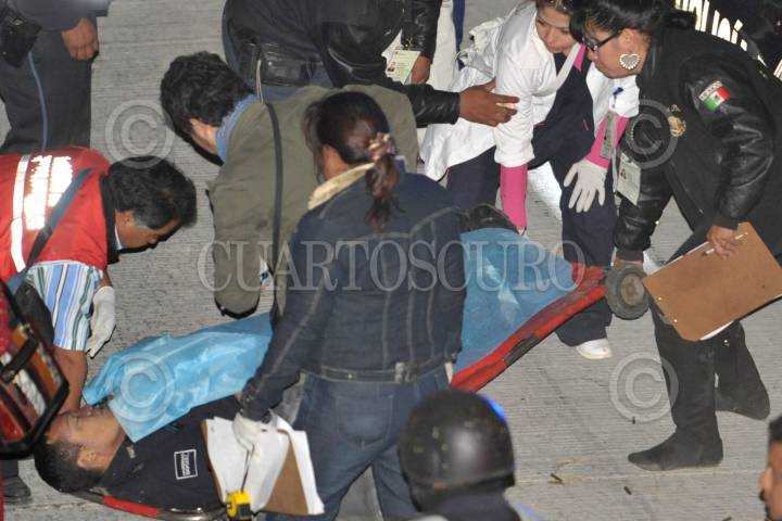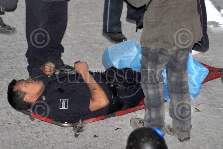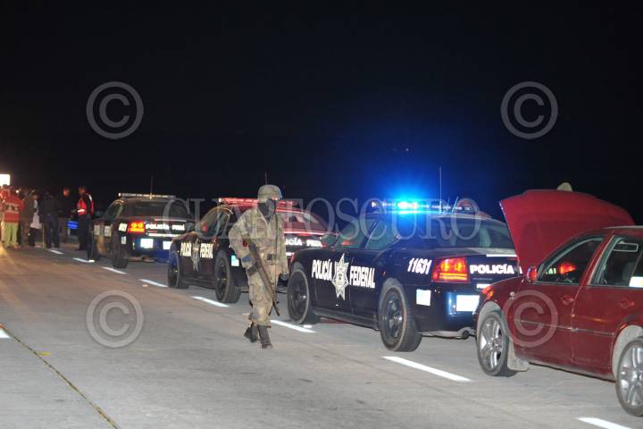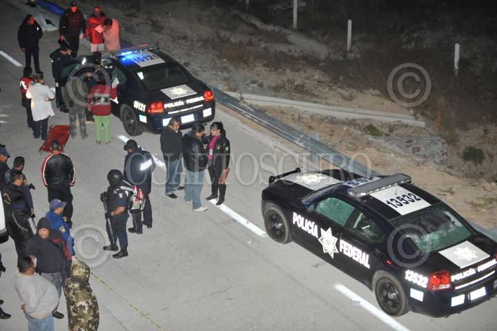 AXAPUSCO, ESTADO DE MÉXICO 28DICIEMBRE2009.- Tres elementos de la policía Federal perdieron la vida al ser emboscados en tres de sus unidades con números económicos 13532, 10121 y 11631 en el Paraje conocido como Xala, ubicado en el Kilómetro 163 de autopista Pachuca Puebla, los hechos sucedieron cuando un vehículo platina en color rojo, aparento estar descompuesto en la parte baja de un puente vehicular, al descender los elementos fueron recibidos con ráfaga de cuerno de chivo de los que ubicaron más de 100 casquillos en el lugar. Al lugar de los hechos arribaron peritos y elementos del ejército Mexicano para resguardar el área y levantar los cuerpos, que fueron trasladados al Ministerio Público de Otumba. FOTO: LUIS CARBAYO/CUARTOSCURO.COM