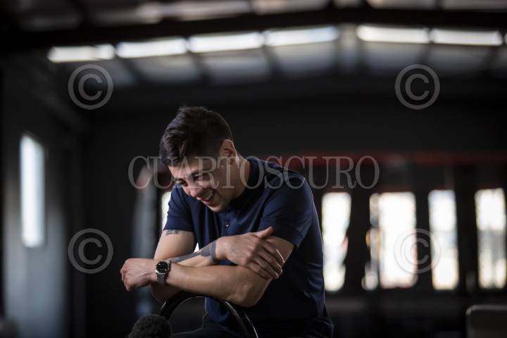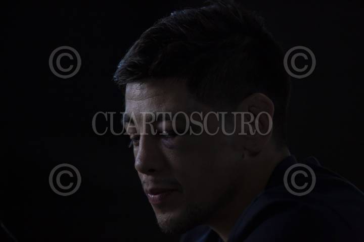 Yair Rodríguez en conferencia de prensa con periodistas mexicanos después de conseguir el campeonato de la UFC (Ultimate Fighting Championship).