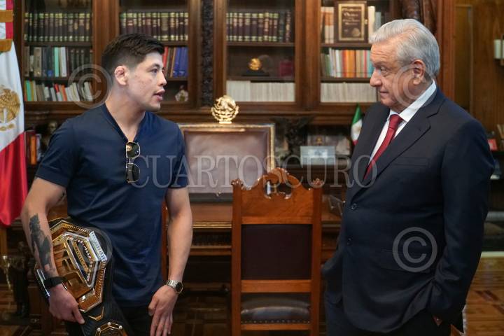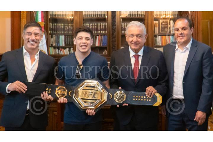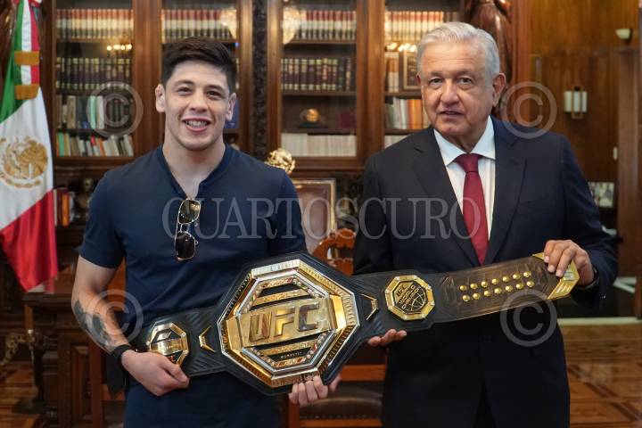 Andrés Manuel López Obrador, Presidente de México, se reunió con Brandon Moreno, campeón mundial de la UFC en artes marciales mixtas, en Palacio Nacional.