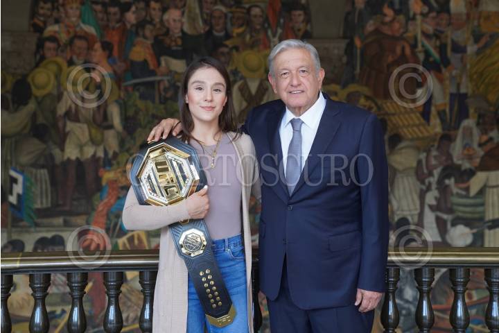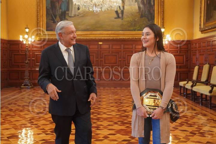 Andrés Manuel López Obrador, Presidente de México, se reunió Alexa Graso, campeona de la UFC, en Palacio Nacional.