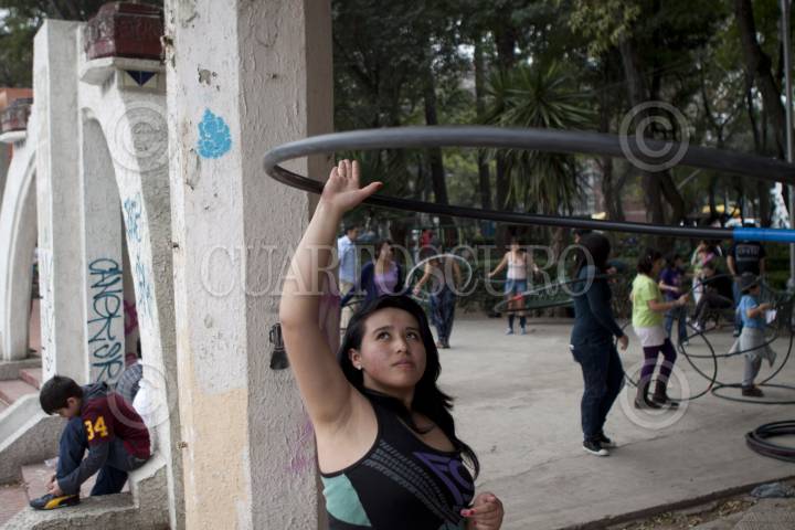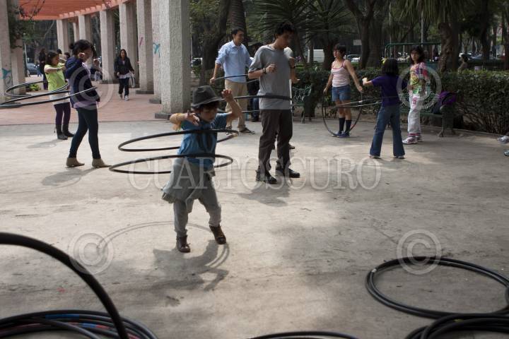 MÉXICO, D.F., 25FEBRERO2012.- Niños y jóvenes se divierten jugando ula-ula en el Parque Mexico. FOTO: MOISÉS PABLO /CUARTOSCURO.COM