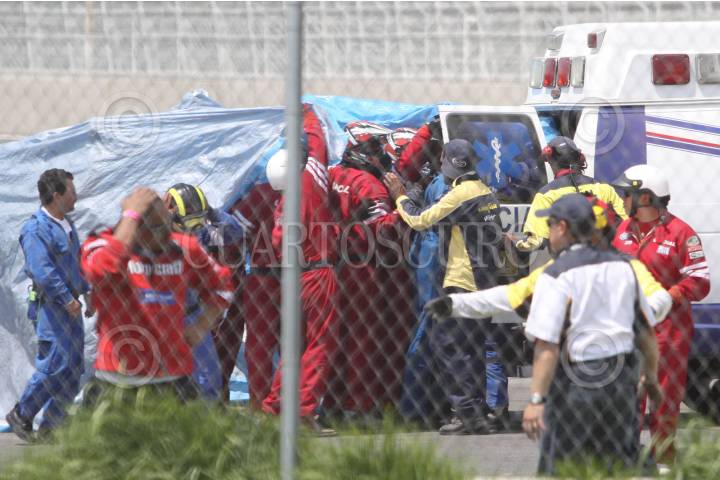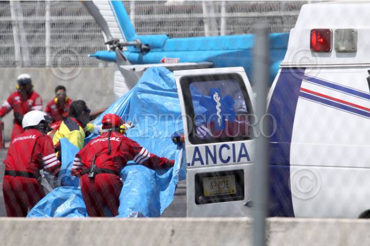 PUEBLA, PUEBLA 14JUNIO2009.- Carlos Pardo falleció este domingo, luego de sufrir un aparatoso accidente en las últimas vueltas de la cuarta fecha de la Nascar México Series 2009 en el autódromo Miguel E. Abed, el piloto capitalino fue alcanzado en la parte central de su auto por Jorge Goeters cuando se disputaban las últimas vueltas y tras el contacto salió disparado contra un muro de contención de la pista poblana FOTO: EL GOLFO CENTRO/CUARTOSCURO.COM