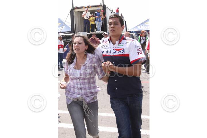 PUEBLA, PUEBLA 14JUNIO2009.- Carlos Pardo falleció este domingo, luego de sufrir un aparatoso accidente en las últimas vueltas de la cuarta fecha de la Nascar México Series 2009 en el autódromo Miguel E. Abed, el piloto capitalino fue alcanzado en la parte central de su auto por Jorge Goeters cuando se disputaban las últimas vueltas y tras el contacto salió disparado contra un muro de contención de la pista poblana. En la imágen Ana la esposa del corre a la pista tras saber la noticia del accidente del piloto FOTO: EL GOLFO CENTRO/CUARTOSCURO.COM