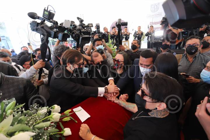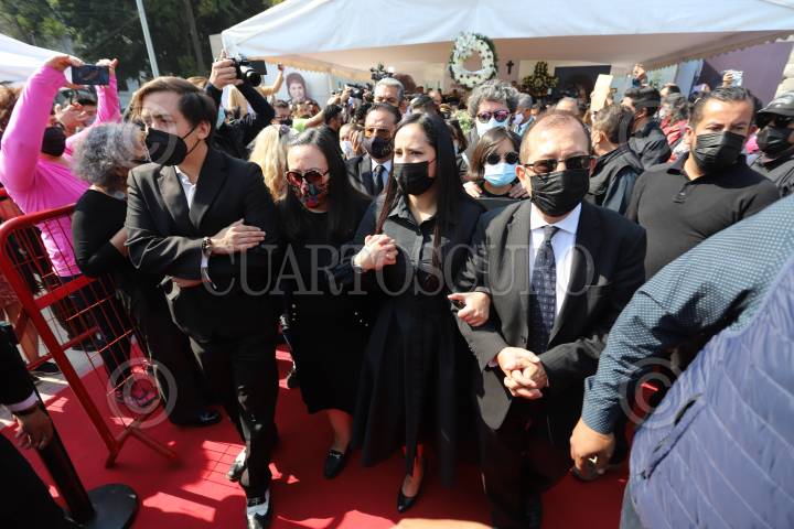 Manuel Monje, María Eugenia Plascencia, Gustavo Briones, Bibiana Monje y familiares durante el homenaje de cuerpo presente de la actriz Carmen Salinas en la explanada del Monumento a la Madre.