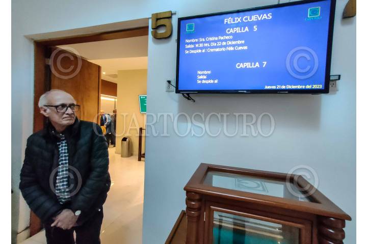 CIUDAD DE MÉXICO, 21DICIEMBRE2023.- Laura Pacheco, hija de Cristina Pacheco, periodista y escritora, forman guardia de honor a su madre quién falleció hoy a los 82 años. FOTO: MARIO JASSO/CUARTOSCURO.COM