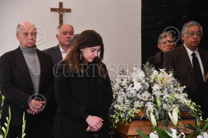 CIUDAD DE MÉXICO, 21DICIEMBRE2023.- Cecilia Pacheco, hija de Cristina Pacheco, periodista y escritora, forman una guardia de honor a su madre quién falleció hoy a los 82 años. Estuvieron presentes: Enrique Krauze, historiador y ensayista, y Héctor de Mauleón, escritor y periodista. FOTO: MARIO JASSO/CUARTOSCURO.COM