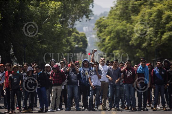 MORELIA, MICHOACÁN, 13SEPTIEMBRE2016.- Estudiantes de la Coordinadora de Universitarios en Lucha (CUL), realizaron bloqueo de la avenida Acueducto y avenida Ventura Puente. Aproximadamente 300 rechazados y aspirantes a la Universidad Michoacana de San Nicólas de Hidalgo (UMSNH) buscan un espacio en la máxima casa de estudios del estado, gestaron una manifestación para llevar a obtener un espacio a sus más de mil 700 afiliados al movimiento. Los integrantes del Movimiento de Aspirantes y Rechazados (MAR) se ubicaron en el tramo frente a la facultad de Enfermería con pancartas y gritando consignas en las que se exige el derecho a la educación pública, laica y gratuita. La gran mayoría de los jóvenes que integran la MAR son aquellos que no pudieron ingresar a la universidad por su deficiente resultado en el exámen de ingreso o por no haber realizado los trámites en tiempo y forma como lo manda la Casa de Hidalgo. En el lugar se llegarton uniformados de Policía Michoacán y de la Dirección de Tránsito y Movilidad del Estado dialogando con los inconformes, con lo que al final se logró el acuerdo de liberar la vías. FOTO: ALAN ORTEGA /CUARTOSCURO.COM