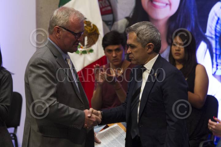 CIUDAD DE MÉXICO, 26SEPTIEMBRE2016.- El Jefe de Gobierno Miguel Ángel Mancera, y Arie Hoekman, representante del Fondo de Población de las Naciones Unidas en México (UNFPA por sus siglas en inglés), encabezaron la "Firma de Convenio entre Injuve CDMX y UNFPA", en el marco del Día Mundial para la Prevención del Embarazo no Planificado en Adolescentes, en el Antiguo Palacio del Ayuntamiento. FOTO: MOISÉS PABLO /CUARTOSCURO.COM
