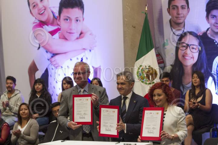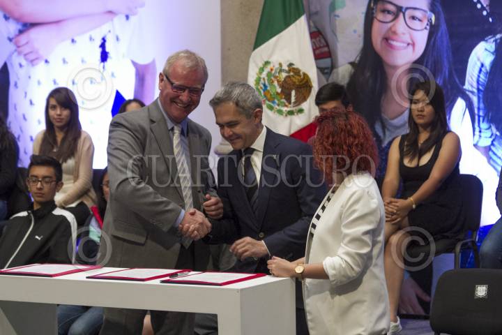 CIUDAD DE MÉXICO, 26SEPTIEMBRE2016.- El Jefe de Gobierno Miguel Ángel Mancera encabezó la "Firma de Convenio entre Injuve CDMX y UNFPA", en el marco del Día Mundial para la Prevención del Embarazo no Planificado en Adolescentes. El Fondo de Población de las Naciones Unidas, mejor conocido por sus siglas en inglés UNFPA, señaló que México ocupa uno de los primeros lugares en el índice de embarazos a temprana edad. FOTO: MOISÉS PABLO /CUARTOSCURO.COM