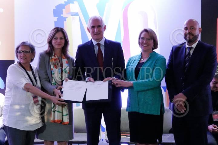 Alanna Armitage, representante del Fondo de las Naciones Unidas (UNFPA), y Kevin Ali, director Ejecutivo de Organon, encabezaron una firma de convenio de colaboración CON el Consejo Nacional de Población (CONAPO), para diseñar e implementar un modelo de prevención de embarazo en adolescentes en la Ciudad de México