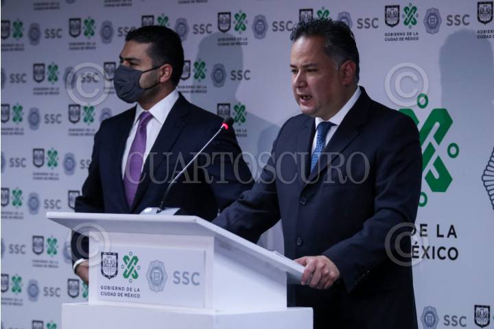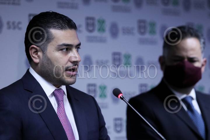 Omar García Harfuch y Santiago Nieto durante la conferencia de prensa para anunciar resultados de la denominada Operación Zócalo
