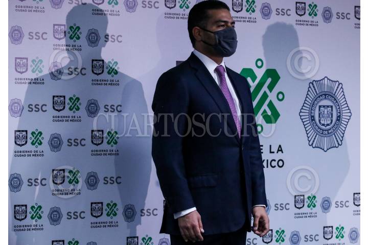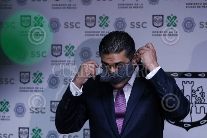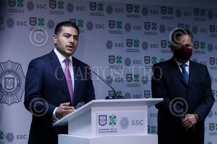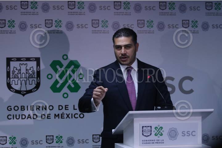 Omar García Harfuch durante la conferencia de prensa para anunciar resultados de la denominada Operación Zócalo