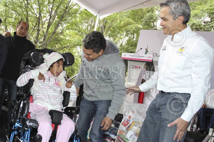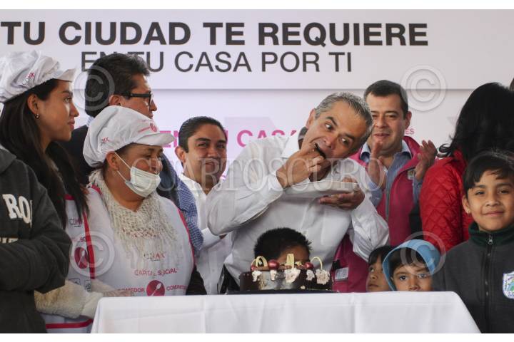MÉXICO, D.F., 16ENERO2016.- MIguel Ángel Mancera, jefe de gobierno capitalino, acudió a la Jornada Tu Ciudad te Requiere en la Unidad Habitacional Tlatelolco, en donde estuvo acompañado por el delegado de la demarcación, Ricardo Monreal. Al término del evento partió un pastel de cumpleaños pues hoy celebra su natalicio. FOTO: MARÍA JOSÉ MARTÍNEZ /CUARTOSCURO.COM