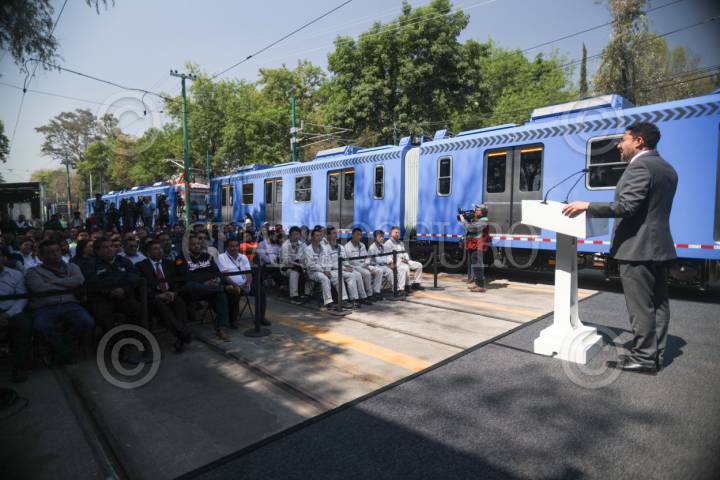 CIUDAD DE MÉXICO, 24DICIEMBRE2024.- El gobierno capitalino realizó la entrega de tres trenes rehabilitados del Tren Ligero. FOTO: MARIO JASSO/CUARTOSCURO.COM