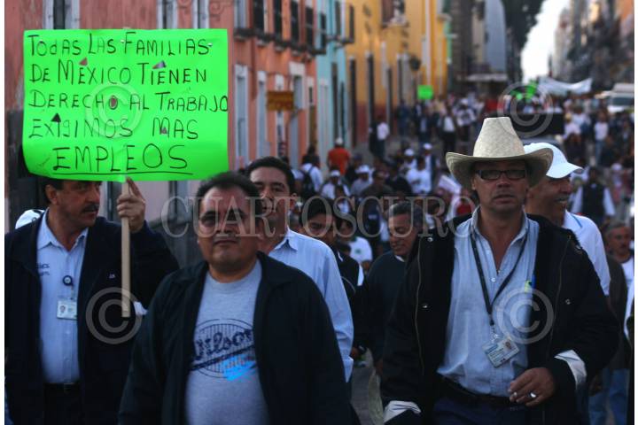 PUEBLA, PUEBLA, 11NOVIEMBRE2009.- Trabajadores de Teléfonos de México y otros sindicatos se unieron al del SME como parte del paro nacional convocado por los electricistas de luz y fuerza del centro. FOTO: FRANCO/CUARTOSCURO.COM