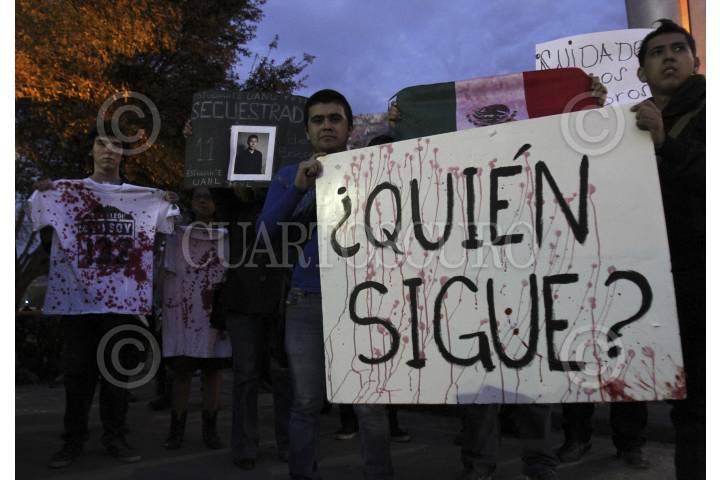 MONTERREY, NUEVO LEÓN, 21ENERO2013.- Estudiantes de la Universidad Autónoma de Nuevo León realizaron una protesta en la facultad de ingeniería mecánica y eléctrica para recordar al estudiante Adrián González Villarreal, ejecutado en días pasados por policías del municipio de Santa Catarina. También otros estudiantes miembros de la Asamblea Estudiantil exigen la resolución de los asesinatos de estudiantes durante los últimos años. FOTO: GABRIELA PÉREZ MONTIEL /CUARTOSCURO.COM