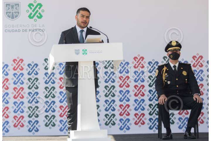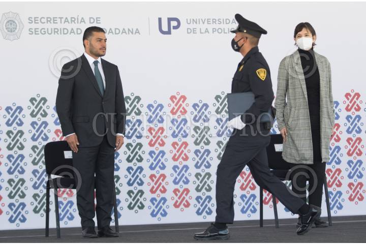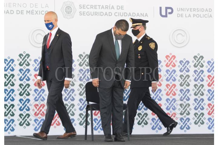 Ceremonia de graduación de cadetes del la Universidad de la Policía de la Ciudad de México. Omar García Harfuch, director de la policía Capitalina, encabezó lel evento