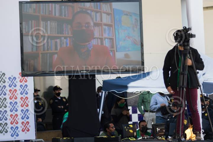 Claudia Sheinbaum, Jefa de Gobierno, participó de manera virtual en la graduación de cadetes que se realizó en la Universidad de la Policía de la Ciudad de México.