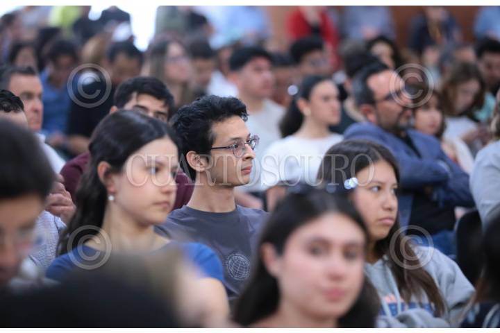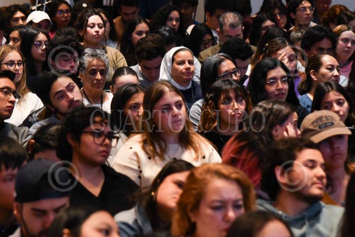 CIUDAD DE MÉXICO, 20MARZO2024.- Comunidad de la Universidad Iberoamericana Campus Santa Fe, durante el diálogo con Clara Brugada, candidata a la jefatura de Gobierno por la coalición Sigamos Haciendo Historia (Morena, PT, y PVEM), en el "Encuentro por la democracia". FOTO: MARIO JASSO/CUARTOSCURO.COM