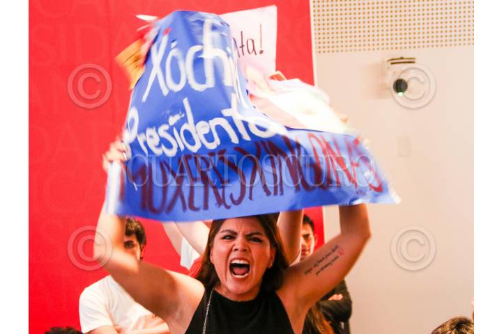 CIUDAD DE. 08ABRIL2024.- La candidata a la Presidencia de la República, por la Coalición Fuerza y Corazón por México, Xochitl Gálvez Ruíz; acudió a la Universidad Iberoamericana en su campus de Santa Fé. Algunos estudiantes le manifestaron su apoyo otros le recordaron a los partidos que la apoyan en su carrera a la Presidencia. FOTO: VICTORIA VALTIERRA/CUARTOSCURO.COM