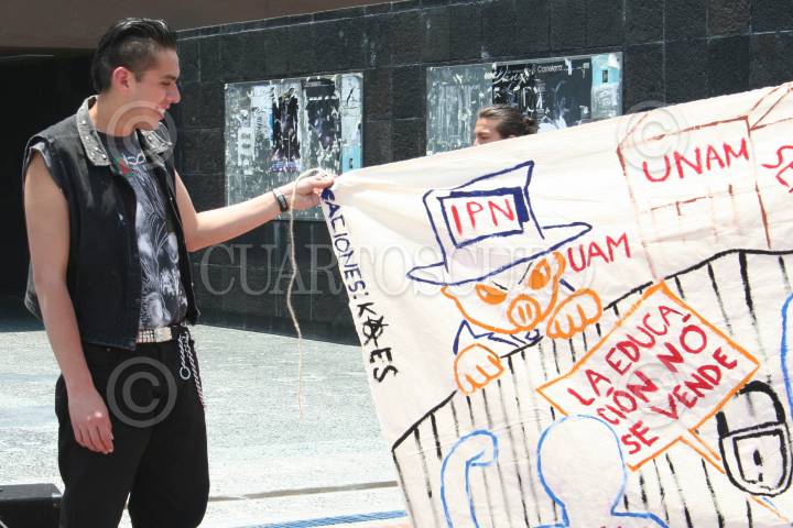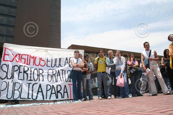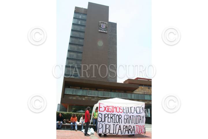 MÈXICO, D.F. 15JUNIO2006.- En frente del edificio de rectorìa de la Universidad Nacional Autònoma de Mèxico, un grupo de alumnos rechazados en el ùltimo proceso de selecciòn del 2 de abril realizaron un manifestación donde exigen su ingreso a la UAM, UNAM e IPN. FOTO: Paola Hidalgo/CUARTOSCURO.COM