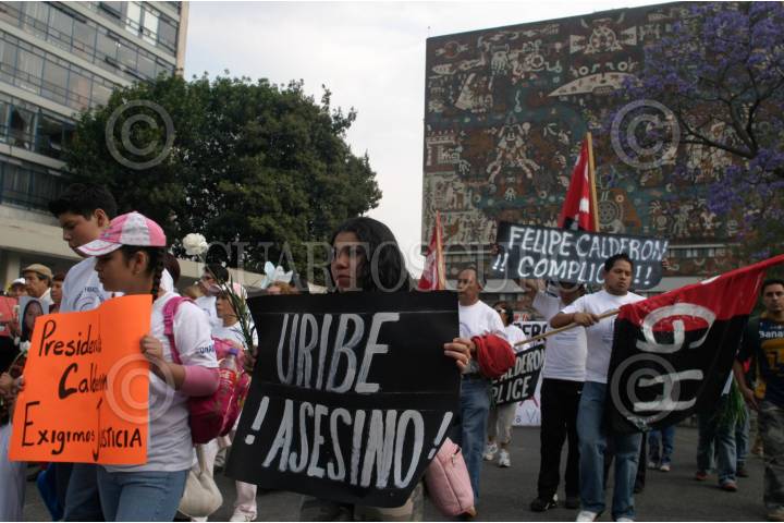 MÉXICO D.F. 25MARZO2008.-Alumnos de la facultad de Filosofia y Letras de la UNAM junto con padres de familias de los ex alumnos fallecidos durante un ataque a un campamento de las Fuerzas Armadas Revolucionarias de Colombia (FARC) en territorio ecuatoriano, realizaron una marcha por el circuito de ciudad universitaria. FOTO: SAÚL LÓPEZ/CUARTOSCURO.COM