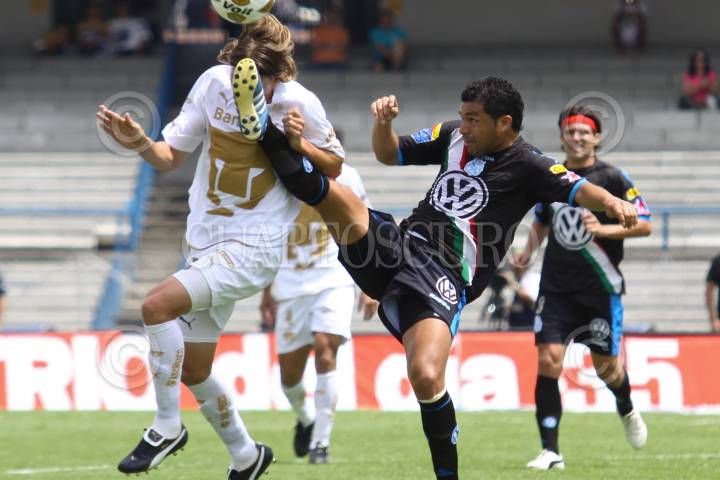 MÉXICO, D.F., 22AGOSTO2010.- Dante López de los Pumas de la UNAM busca el remate durante el encuentro en contra del Puebla de la Franja, partido de la jornada 5 del torneo Apertura 2010 que se realizo en el estadio Olímpico Universitario. Los Pumas ganaron 4 goles por 1. FOTO: RODOLFO ANGULO/CUARTOSCURO.COM