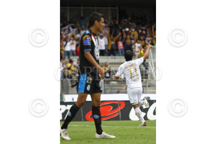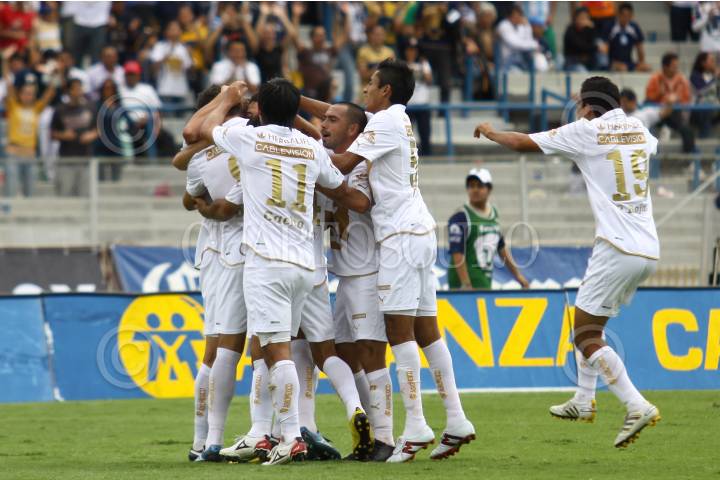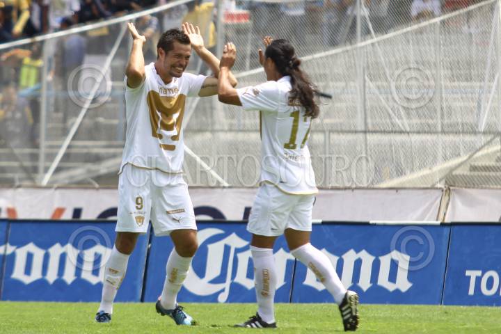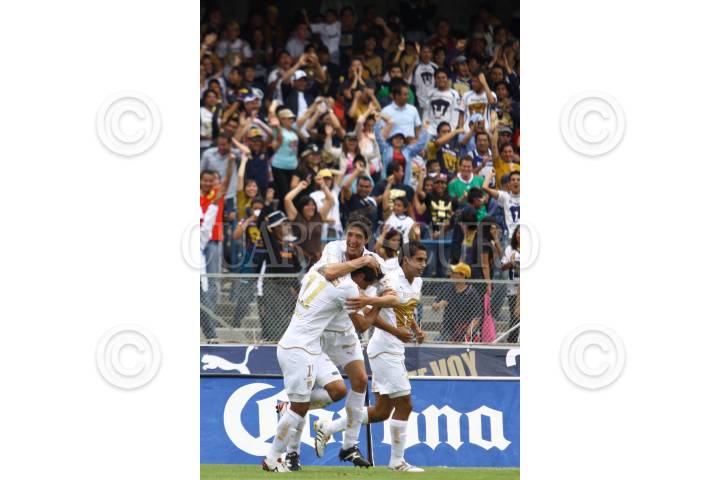 MÉXICO, D.F., 22AGOSTO2010.- Juan Carlos Cacho de los Pumas de la UNAM festeja su anotación en contra del Puebla de la Franja, partido de la jornada 5 del torneo Apertura 2010 que se realizo en el estadio Olímpico Universitario. Los Pumas ganaron 4 goles por 1. FOTO: RODOLFO ANGULO/CUARTOSCURO.COM