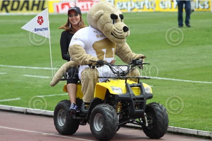MÉXICO, D.F., 22AGOSTO2010.- Goyo, la mascota de los Pumas de la UNAM durante el medio tiempo del encuentro en contra del Puebla de la Franja, partido de la jornada 5 del torneo Apertura 2010 que se realizo en el estadio Olímpico Universitario. Los Pumas ganaron 4 goles por 1. FOTO: RODOLFO ANGULO/CUARTOSCURO.COM