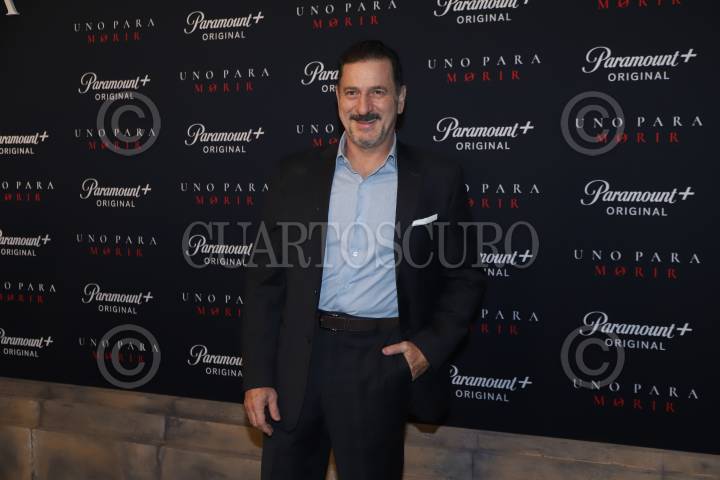 Juan Carlos Remolina a su paso por la alfombra azul por el estreno de la película de la plataforma Paramount+ “Uno para morir”, protagonizada y dirigida por Manolo Cardona; en el Museo Casa de la Bola.