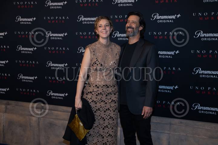 Johanna Murillo y José María Yazpik a su paso por la alfombra azul por el estreno de la película de la plataforma Paramount+ “Uno para morir”, protagonizada y dirigida por Manolo Cardona; en el Museo Casa de la Bola.