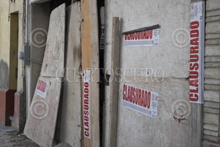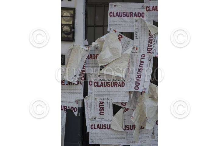 MÉXICO, D.F., 30AGOSTO2014.- Sellos de clausura y señalamientos que explicitan el cese de actividades, tapizan algunas fachadas de establecimientos en la Condesa, una de las colonias con mayor plusvalía en la capital del país. La ocupación desmedida de establecimientos, como restaurantes y bares, los cuales utilizan permisos de uso de suelo en algunos casos con otros fines, representa una situación actual de conflicto entre los vecinos. FOTO: PEDRO VALTIERRA /CUARTOSCURO.COM