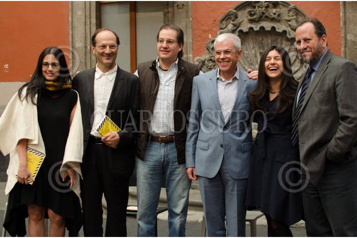 MÉXICO, D.F., 07MARZO2015.- Eduardo Vázquez, secretario de cultura del gobierno capitalno; Alejandro Chertorivsky, titular de la Secretaría de Desarrollo Económico; Mikel Adriá, editor de la revista Arquine; Felipe de Jesús, de la SEDECO; Diana Quintanar, de la Autoridad del Espacio Público; y Andrea Gruboria, presentaron Mextrópol, Festival Internacional de Arquitectura y Ciudad, que se llevar´a a cabo del 06 al 10 de marzo en la Ciudad de México, como un intento por armonizar y acercar la arquitectura urbana a los habitantes. FOTO: MARÍA JOSÉ MARTÍNEZ /CUARTOSCURO.COM
