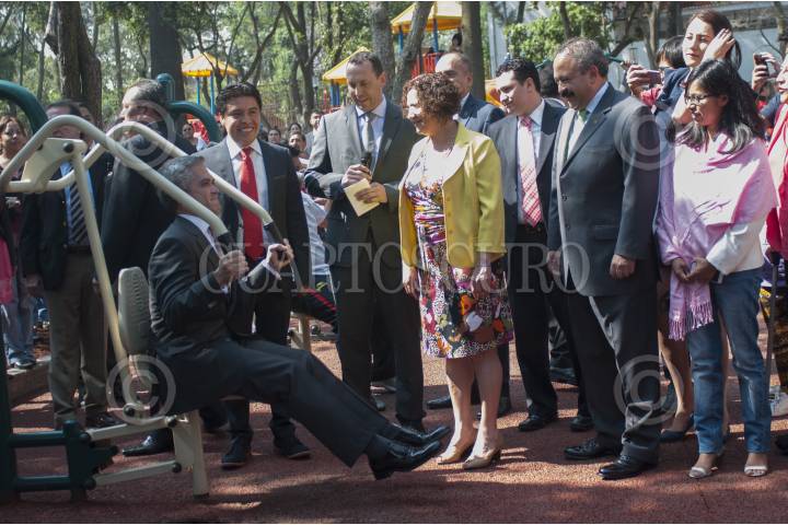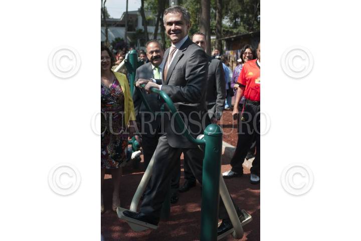 MÉXICO, D.F., 16ABRIL2014.- Miguel Ángel Mancera, jefe de gobierno del Distrito Federal, presentó el programa de gimnasios urbanos en el parque Juana de Asbaje ubicado en el centro de la Delegación Tlalpan. FOTO: IVÁN STEPHENS /CUARTOSCURO.COM