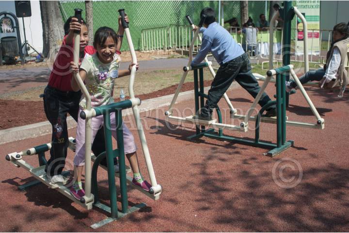 MÉXICO, D.F., 16ABRIL2014.- En el Parque Juana de Asbaje fue inaugurado el programa social "Gimnasio Urbano" que consiste en ofrecer actividades gratuitas en las que la población se ejercite. FOTO: IVÁN STEPHENS /CUARTOSCURO.COM